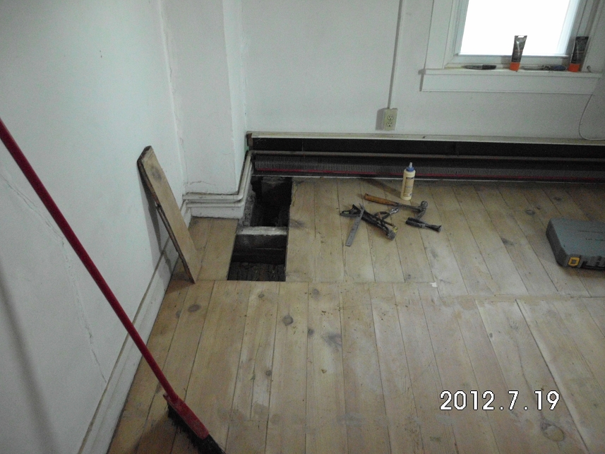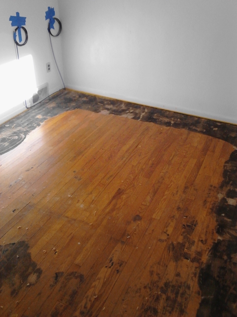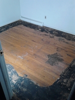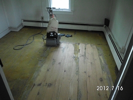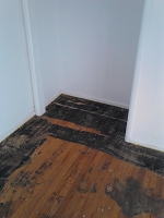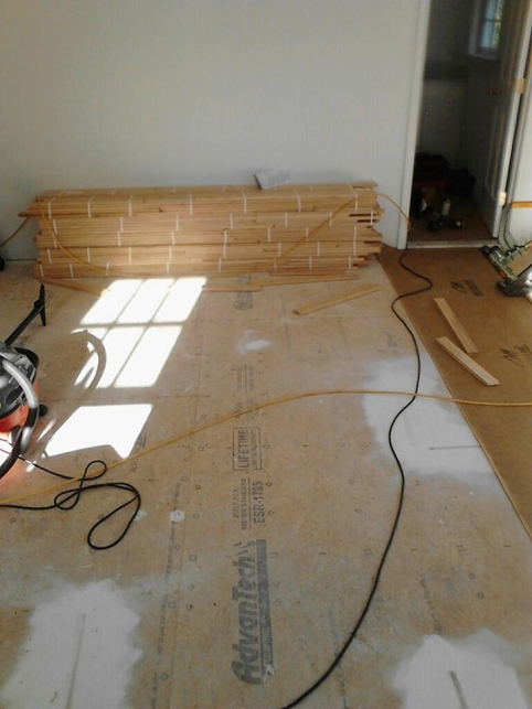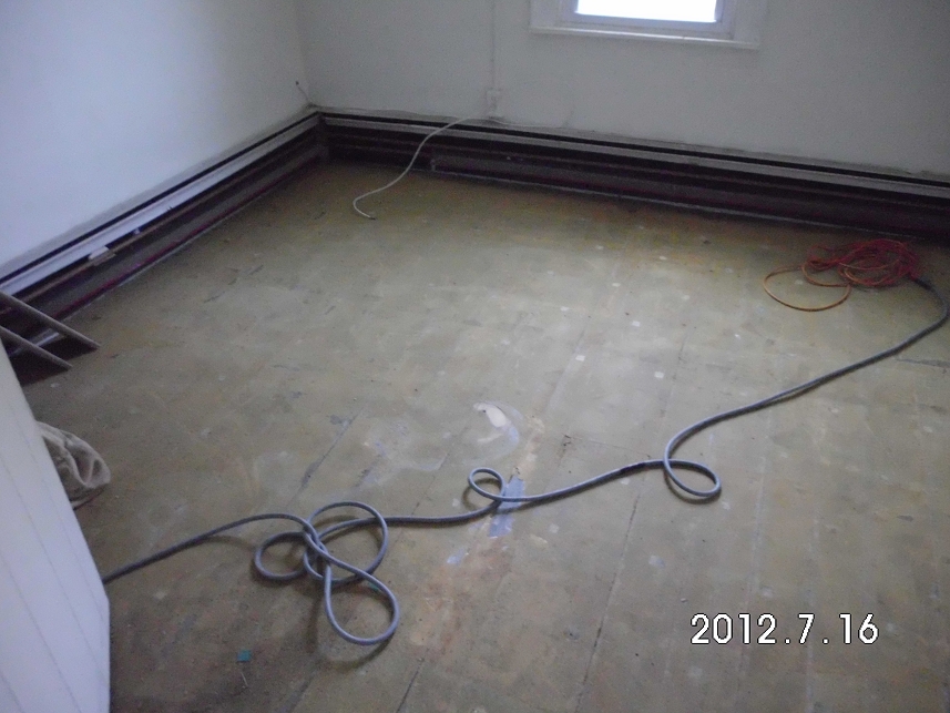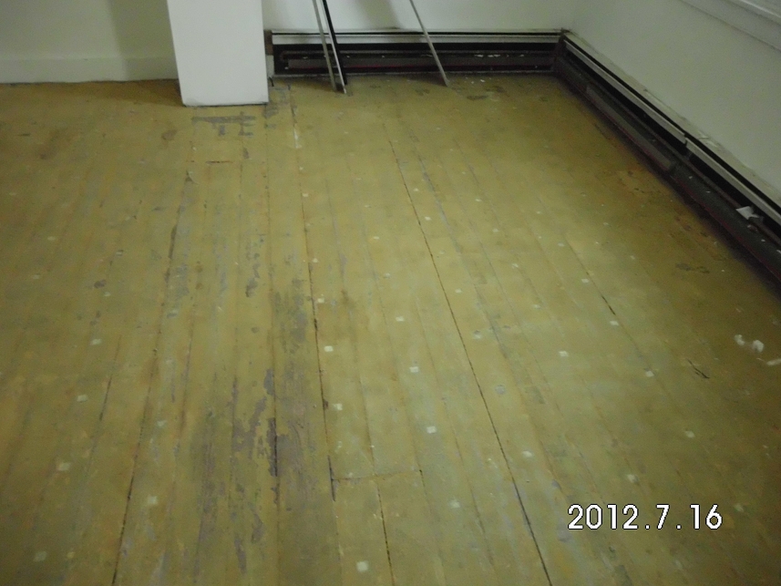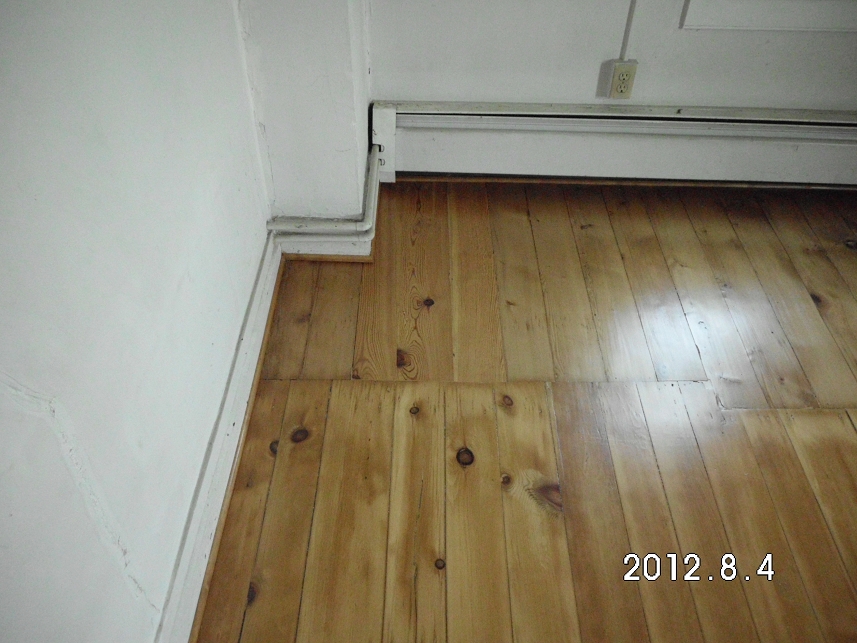 Birch Job Before "old heart pine"- hardwood had glue down carpet on previous